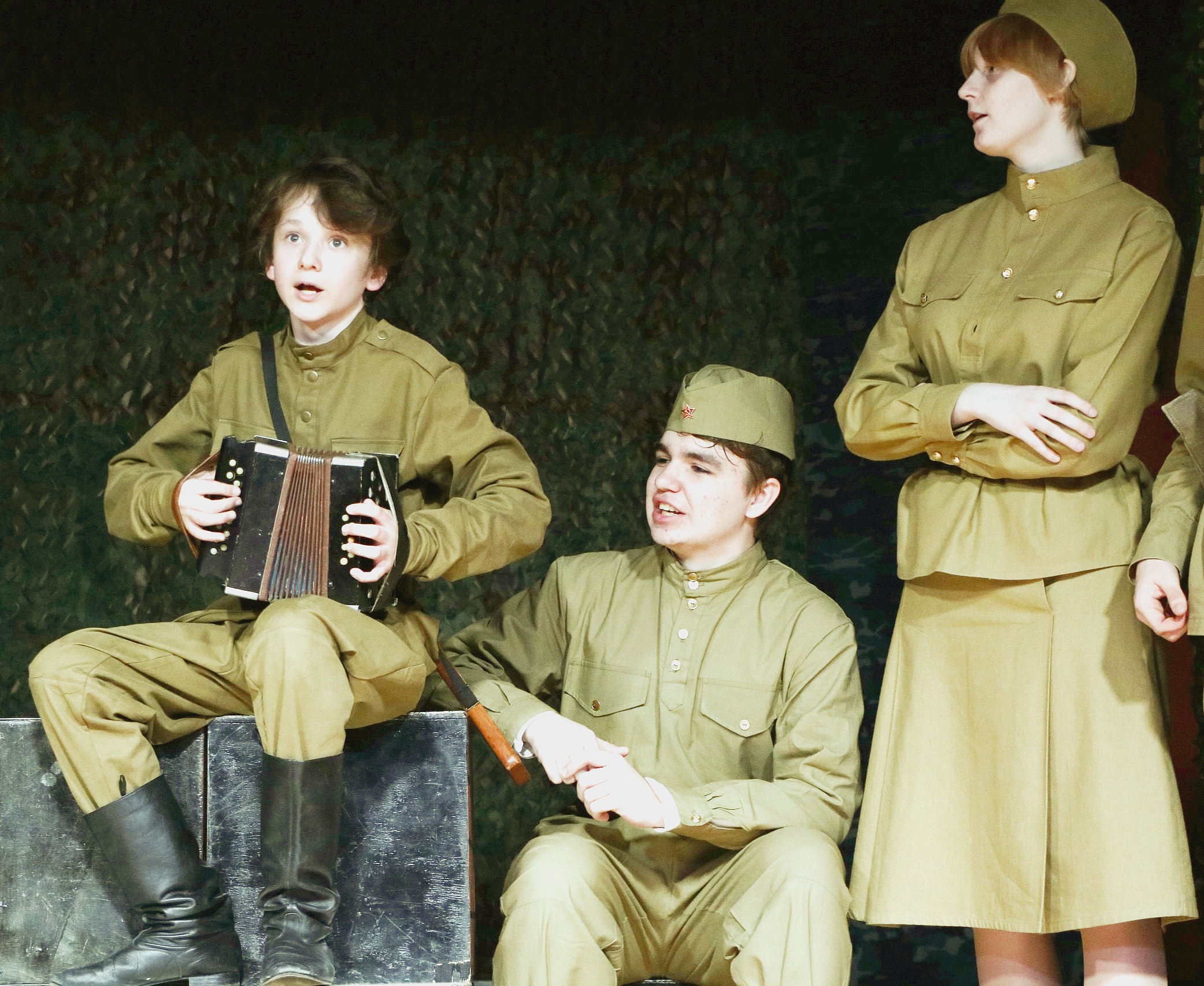 21 марта состоялась премьера литературно-музыкального спектакля театра-студии "Сказка" "Дорогами Василия Теркина" по поэме Александра Трифоновича Твардовского (режиссер-постановщик Мария Дамировна Лобзина). Ребята долго и скрупулезно готовили этот спектакль: подбирали реквизит, придумывали разные приспособления, декорации, готовили костюмы. Чтобы понимать ход мыслей и действий героев, приходилось часто обращаться к словарю, изучать историю Великой Отечественной войны и биографию самого автора.