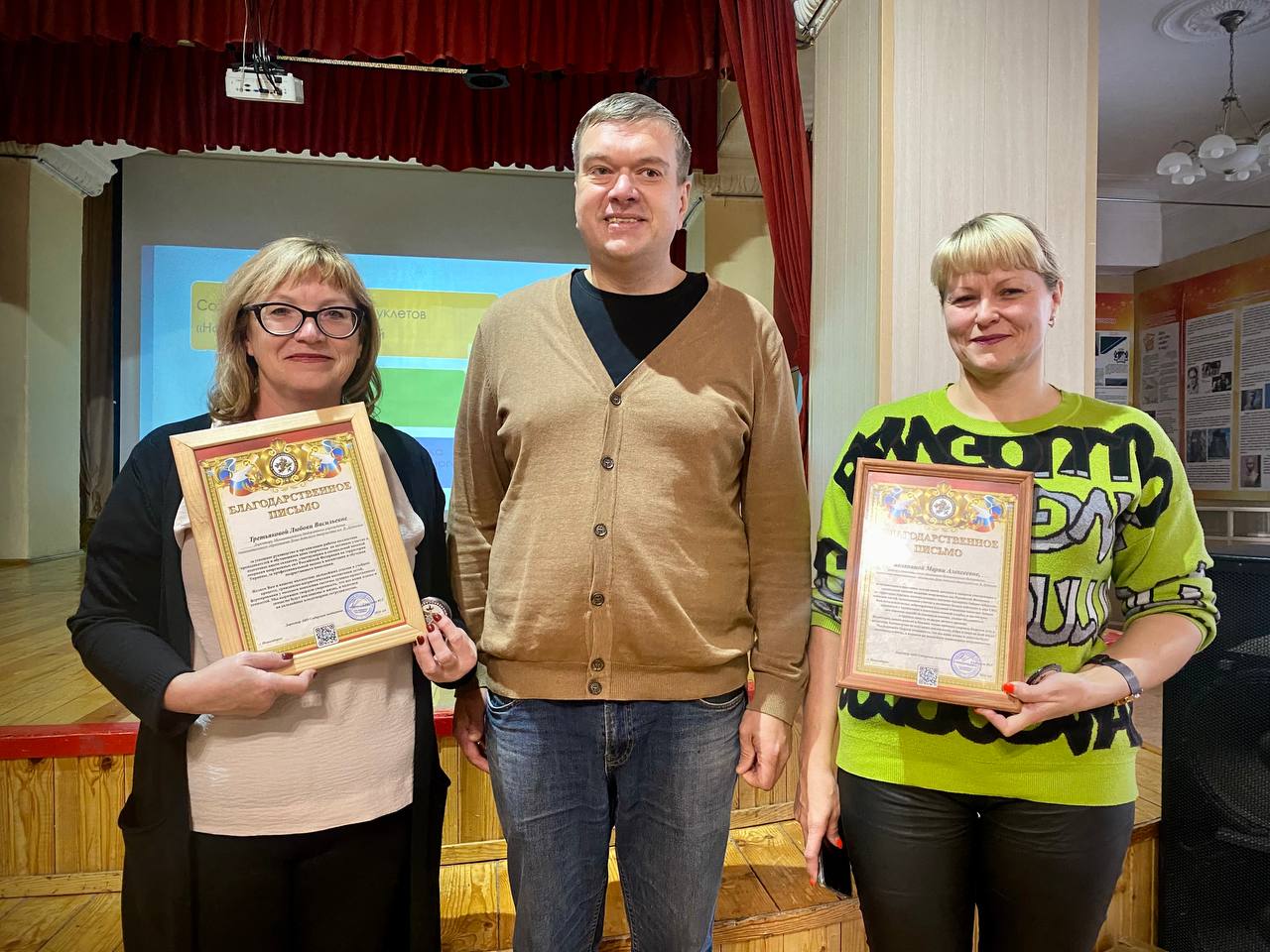 Недавно мы говорили спасибо волонтерскому проекту "Сибирская поддержка", с чьей помощью наши ребята смогли передать знаки внимания и поддержки солдатам, находящимся на передовой. А сегодня Василий Анатольевич Дорофеев, член Совета отцов Кировского района и Общественного совета при министерстве образования Новосибирской области, вручил благодарственные письма АНО "Сибирская поддержка" руководителю студии "Старт-дизайн" Марии Алексеевне Беляниной и директору Дома творчества им. В. Дубинина Любови Васильевне Третьяковой.